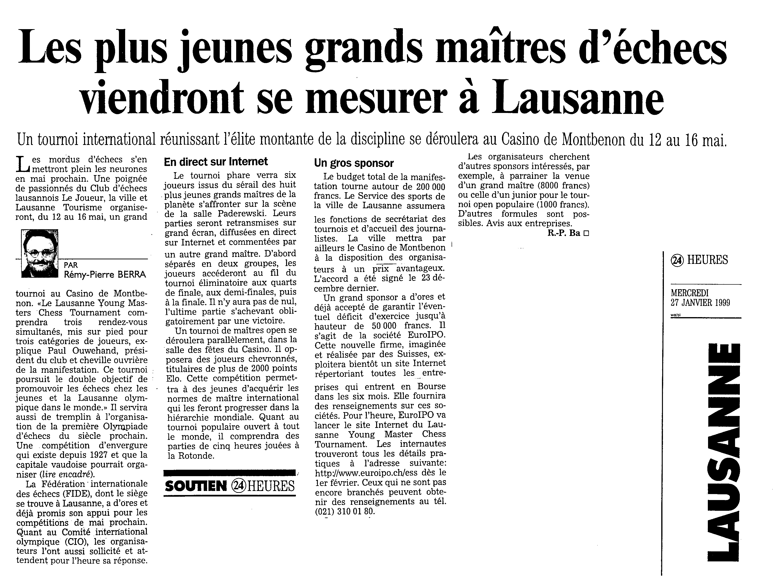24 heures: Les plus jeunes grands maîtres d'échecs viendront se mesurer à Lausanne (GIF)